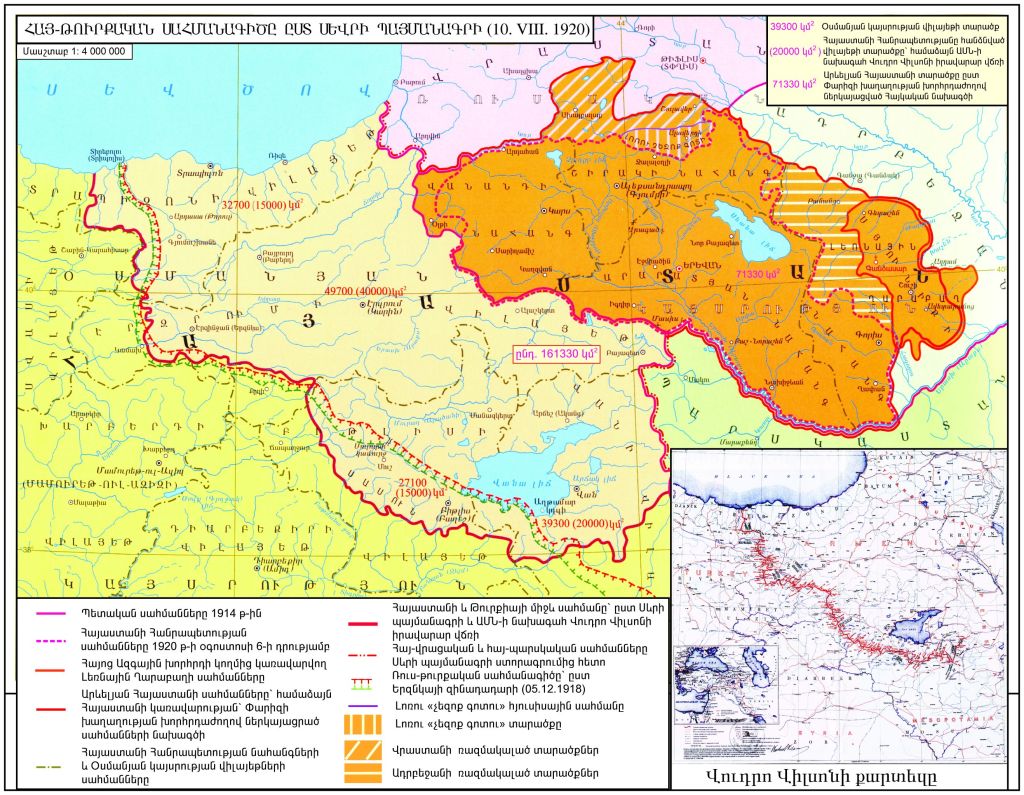 1920թ․ օգոստոսի 10-ին Փարիզի Սևր կոչվող արվարձանում Անտանտի երկրները սուլթանական Թուրքիայի հետ կնքեցին հաշտության պայմանագիր։ Հայաստանի կողմից պայմանագիրը ստորագրեց Ավետիս Ահարոնյանը։